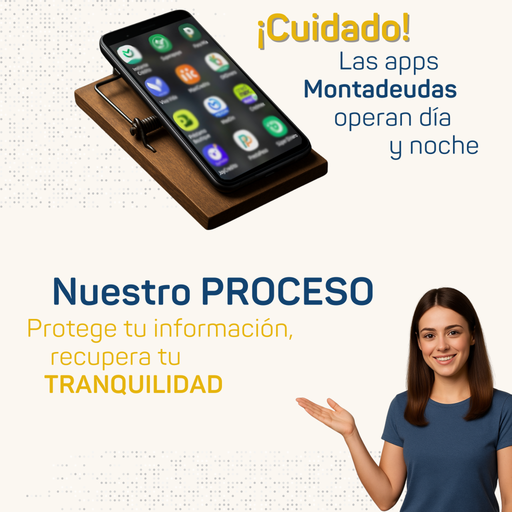 Un equipo especializado en protegerte contra aplicaciones de préstamos fraudulentas. Te brindamos asesoría profesional, acompañamiento y soluciones seguras para ayudarte a enfrentar cobros injustos y proteger tu integridad financiera y digital.